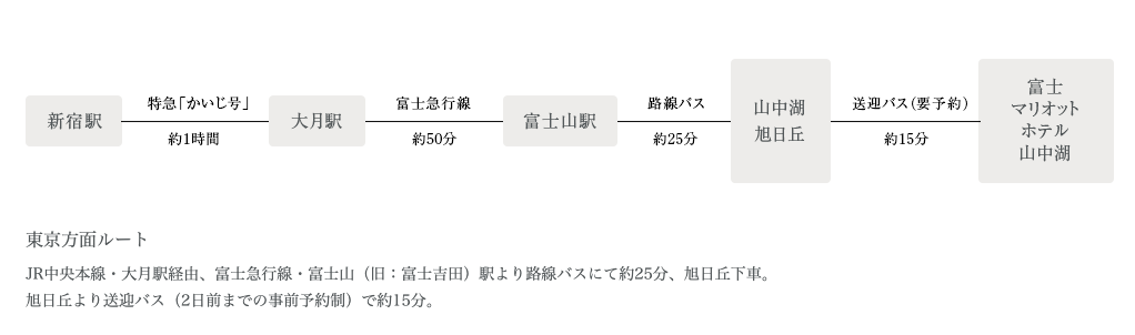 ※「ホテルマウント富士入口←→ホテル」の送迎ご希望の場合は、2日前までにホテルに連絡が必要です(旭日丘経由)